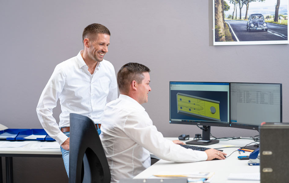 Auf Basis des über Reverse Engineering oder vom Kunden überlassenen CAD-Modells erfolgt, falls gewünscht, ein Neu- bzw. Redesign ihres Bauteils. Insbesondere im Bereich der additiven Fertigung ist eine Bauteiloptimierung sinnvoll um kostengünstig prozieren zu können. Zugleich werden die Formen, Vorrichtungen und Prüflehren konstruiert.